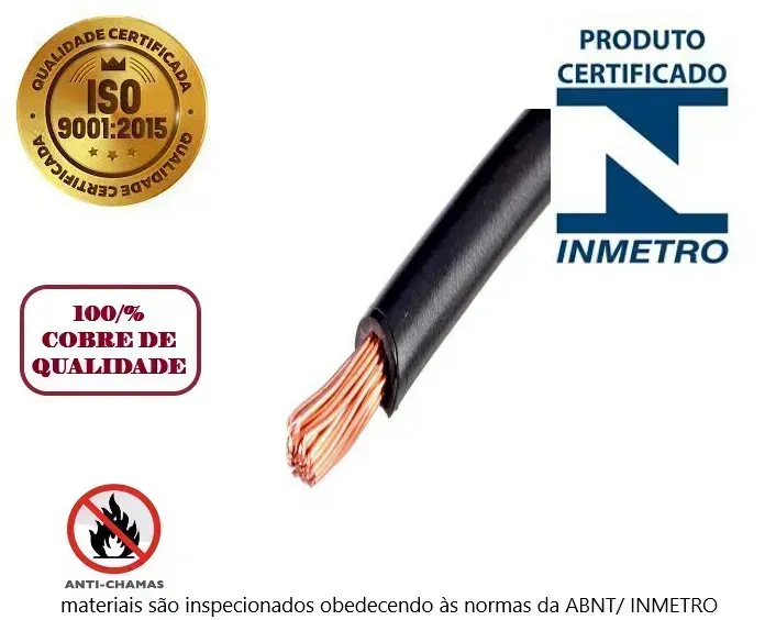 Cabo Flexível 6 mm 1 Metros 750V Certificado inmetro 100% cobre