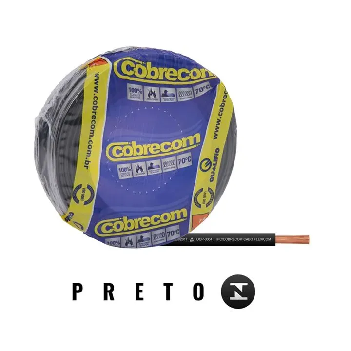 COBRECOM Fios Cabo Flexível 2,5 mm 1 Metros 750V PRETO