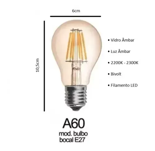 Lâmpada Filamento Led Retro Thomas Edson Vintage Antique 6W A60 2200K Bivolt