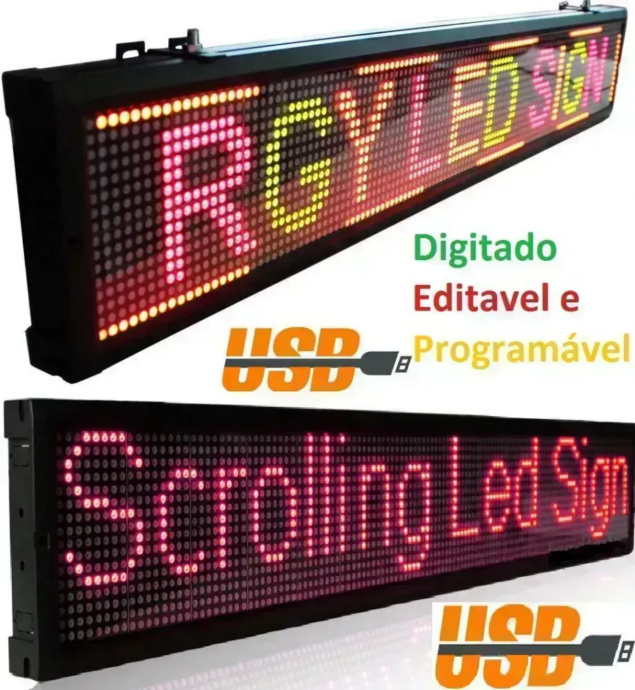 Painel Display Letreiro LED 100 X 20cm - Garantia 1 ANO