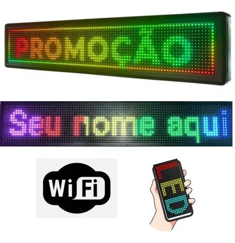 Painel Display Letreiro Led 130cm X 20cm COLORIDO RGB WI-FI INTERNO