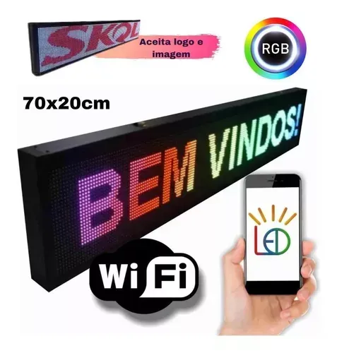 Painel Display Letreiro Led 160cm X 20cm COLORIDO RGB WI-FI INTERNO