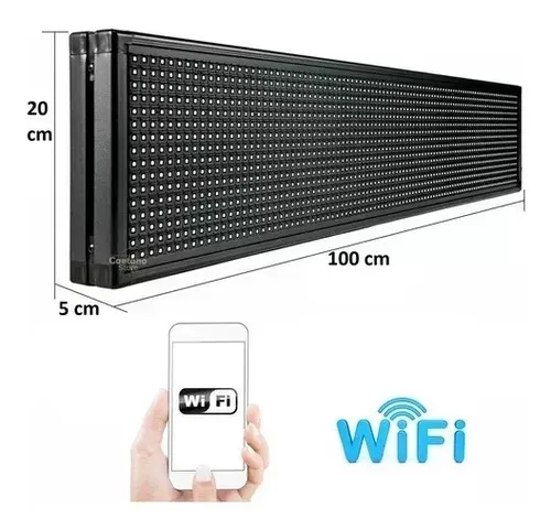 Painel Display Letreiro Led 100cm X 20cm VERDE WI-FI INTERNO
